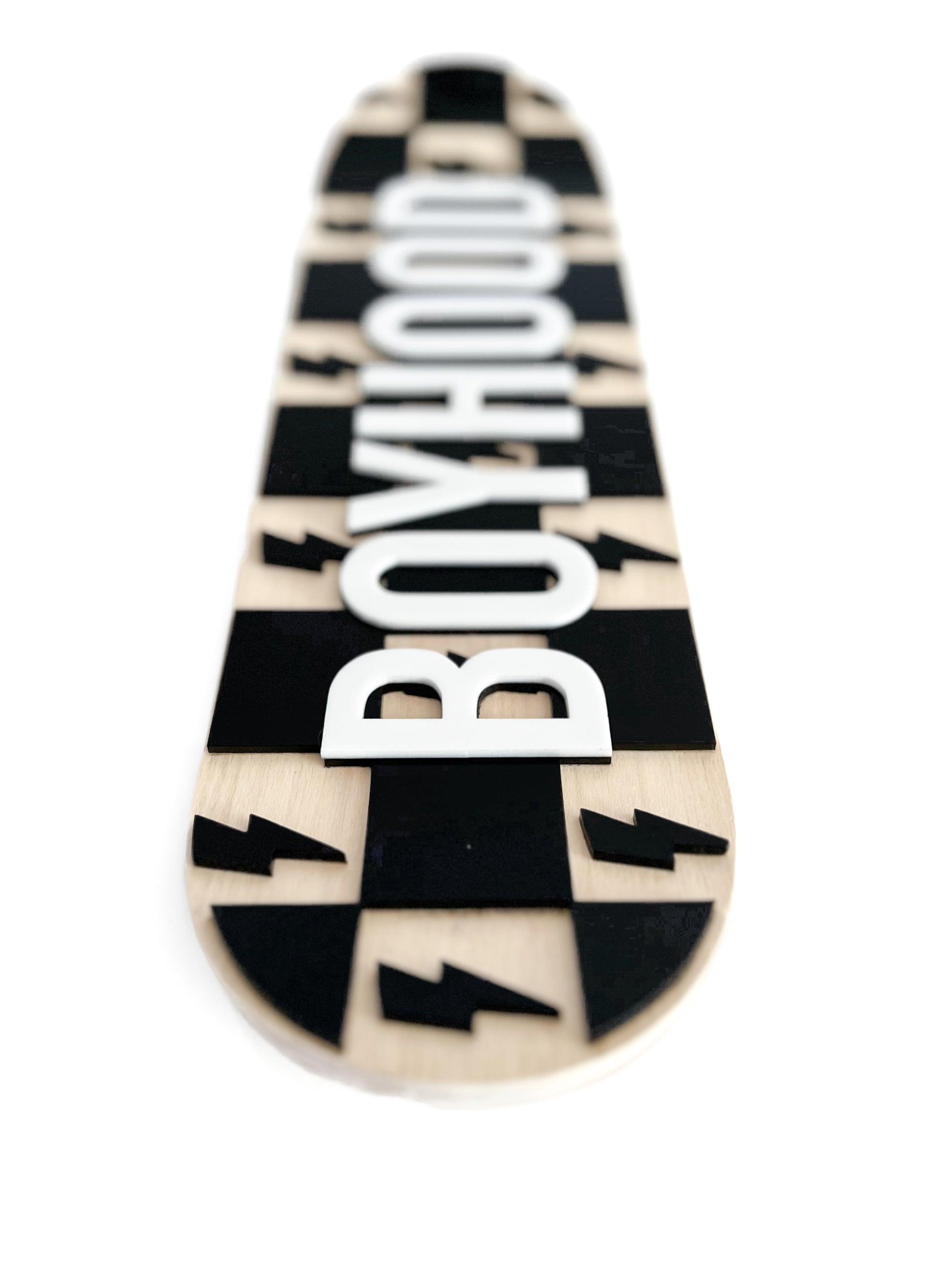 - Available in any of our acrylic colors with option for both name and bolt/check design. Check design has black or white color option only.